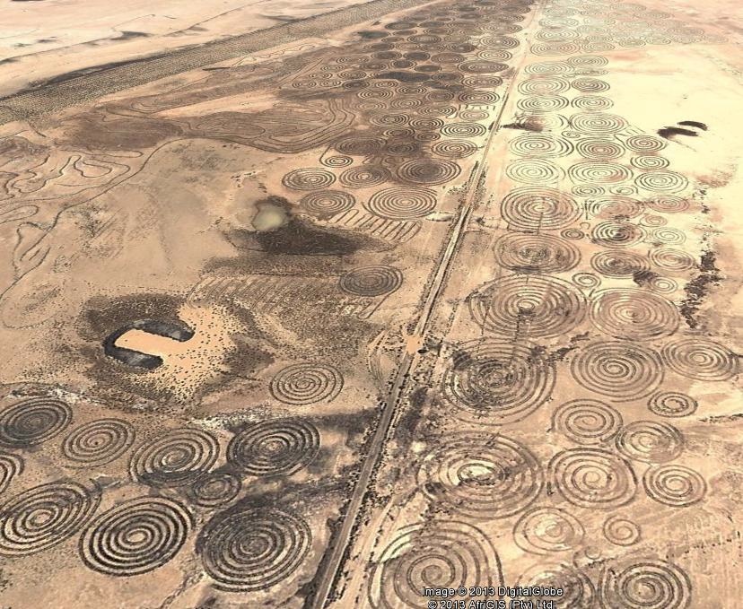 V jihoafrické poušti byly nalezeny podivné obrazce, spirály, které zatím vzdorují vysvětlení. Zajímavé je, že Google Map z roku 2006 je nezobrazil. Souřadnice jsou -30.006010, 21.106024.